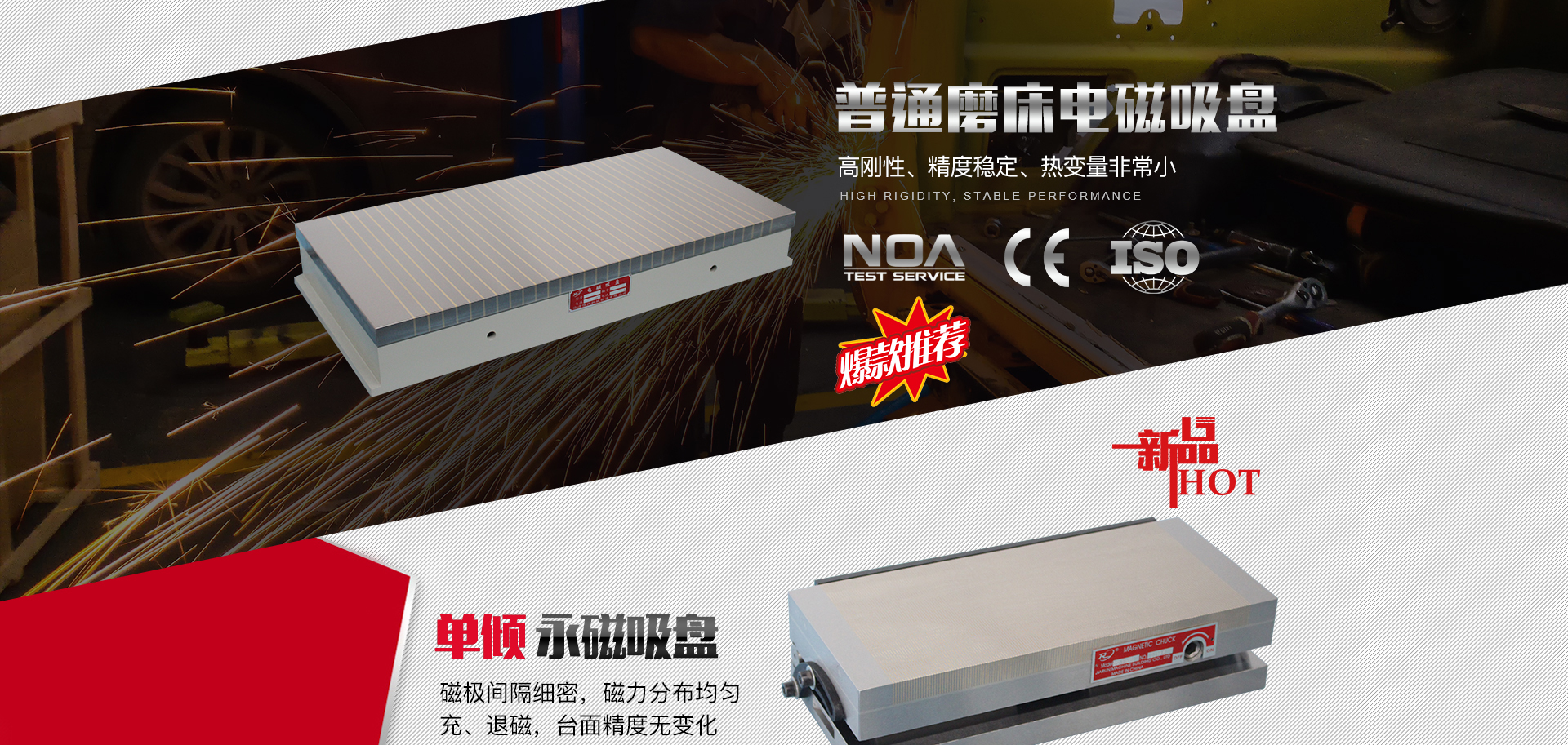 臨清佳潤機械制造有限公司位于山東省臨清市東南工業區。毗鄰京九鐵路、京杭大運河,成立于1995年,擁有多位技術精湛的機床附件科技人員是一家集科研、開發、生產為一體的綜合性高科技企業;公司具有雄厚的技術力量、精良的加工設備、完善的檢測系統。 本公司的主要產品為磁力吸盤,包括:電磁吸盤、永磁吸盤、強力吸盤和專業用吸盤四個系列100多種規格;此外還有電永磁吸盤、道岔專用吸盤,永磁起重器、電磁起重器、框式高效退磁器、臺式退磁器和硅整流控制器等產品,還可以根據客戶要求進行定做。產品適用于平面磨床、火花機、雕刻機、線切割機床、研磨機、鉗工劃線、數控車床、圓臺磨、立式加工中心、銑床、刨床、電腦鑼、鐵路軌道、CNC加工中心、磨刀機、及用于工廠、貨物對鋼鐵重物做吸持起吊搬運等行業。 2015年公司通過企業質量管理體系認證ISO9001認證,2018年公司產品通過歐盟CE認證,2019年公司通過NOV環境管理體系認證,2019年公司通過企業信用等級AAA證書。佳潤機械不斷通過各種機構認證來提升企業管理及生產能力,公司秉承“顧客至上”的經營理念,堅持“質量保證”的原則,為廣大客戶提供優質的專業服務成為眾多用戶的頭選之地。謁誠歡迎新老客戶洽談合作。